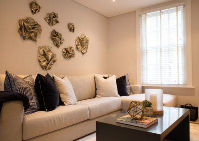 This property was a full internal refurbishment, as well as professionally designed rear garden. The fixtures and furnishings were provided by a Chelsea-based interior designer and the property is available for short lets.