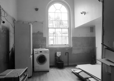 A major redesign to make better use of the existing space, including extending the top floor and creating a balconied area in the kitchen. Before and after photos included here.